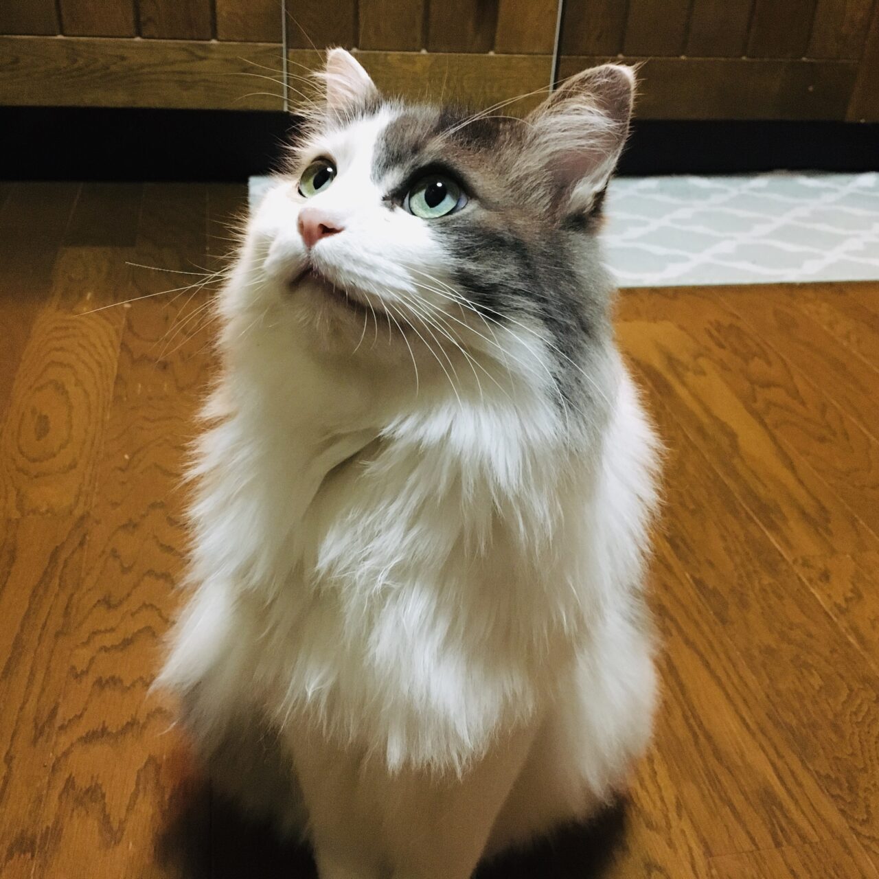 猫たちは留守番をしていました。写真のコントラストを上げると、大きな猫は真っ黒に、白い猫は真っ白になります。