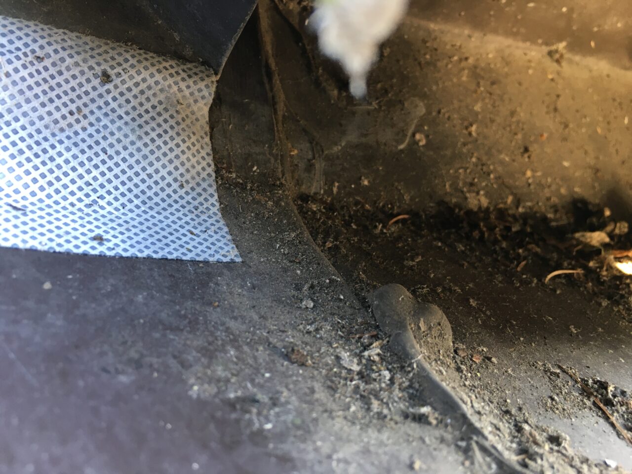 とりあえず今回は動物の侵入を防ぐのが目的なので、黒い網戸をタッカーで貼りました(写真では暗くて全然見えませんが)。