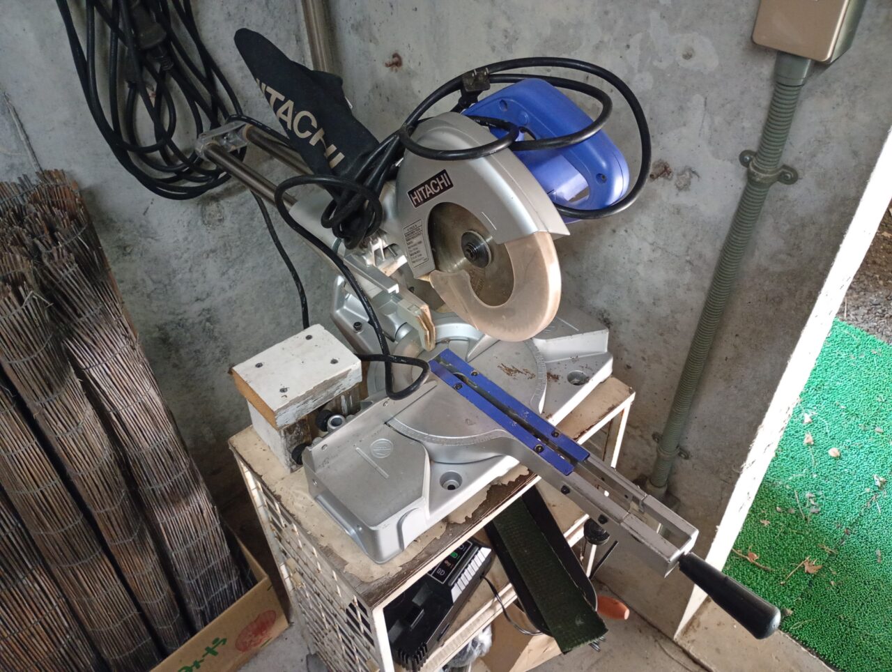 スライド丸ノコで硬い桑の枝を切っていたところ、切断途中で刃の回転が止まる現象が頻発するようになったのでメンテナンスをしました。このスライド丸ノコはハイコーキ(旧日立工機)製で、これまで問題なく動いていたので気にしていませんでしたが、振り返ってみると、2018年に購入してから一度もそれらしいメンテンナスをしていませんでした。