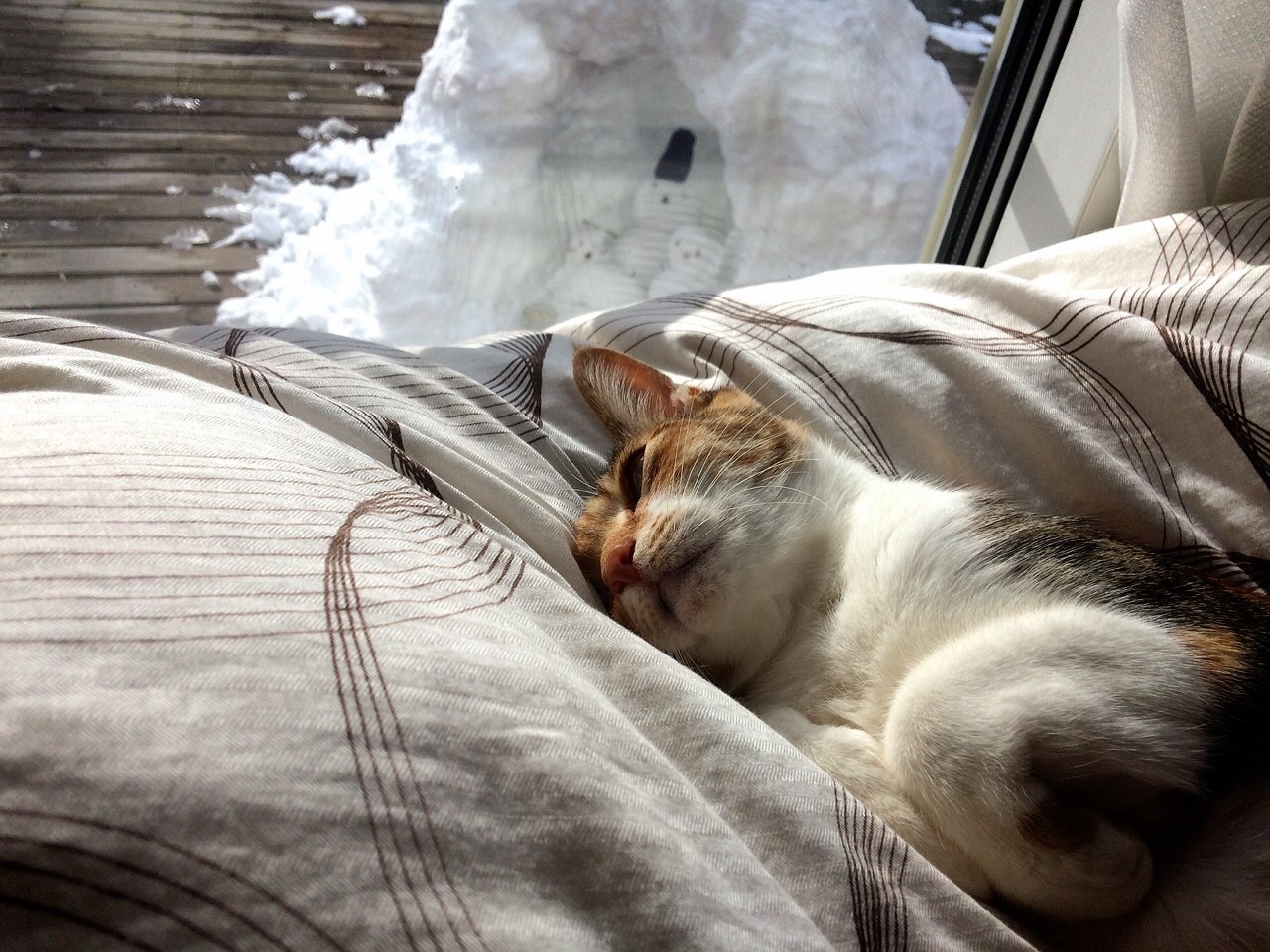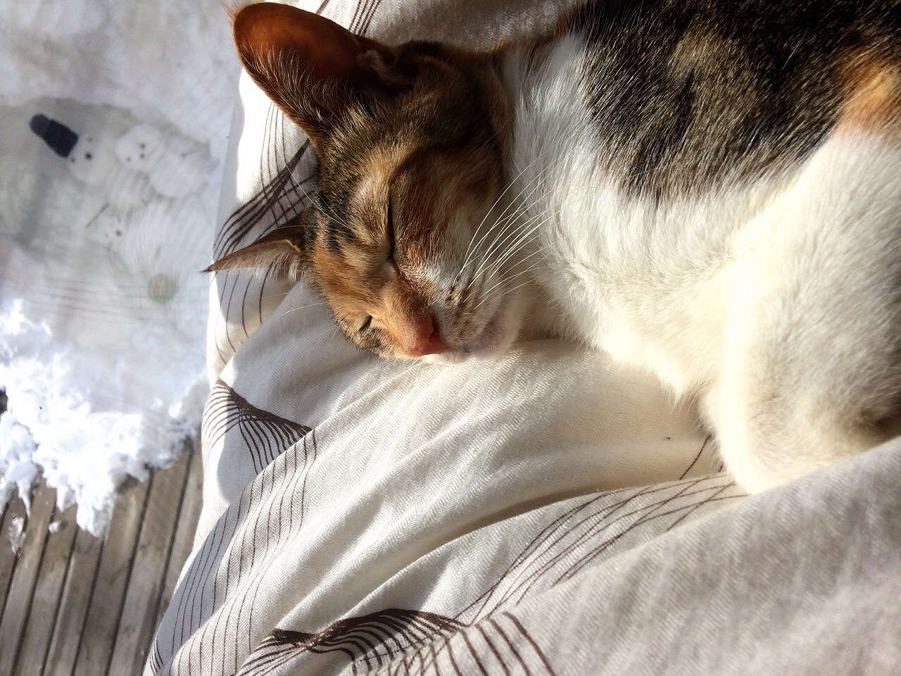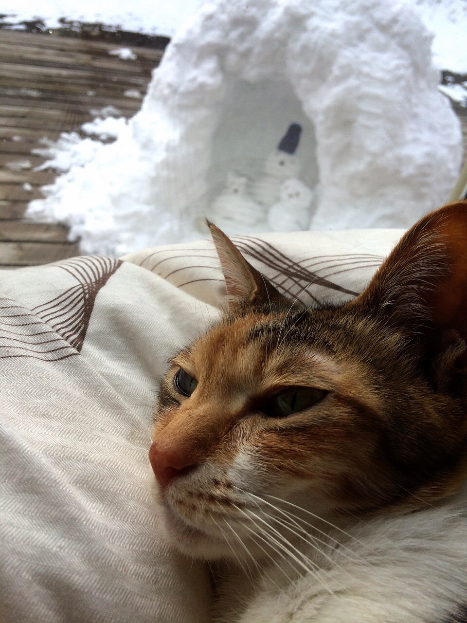 猫は様子を見ていましたが途中で飽きて寝ました。