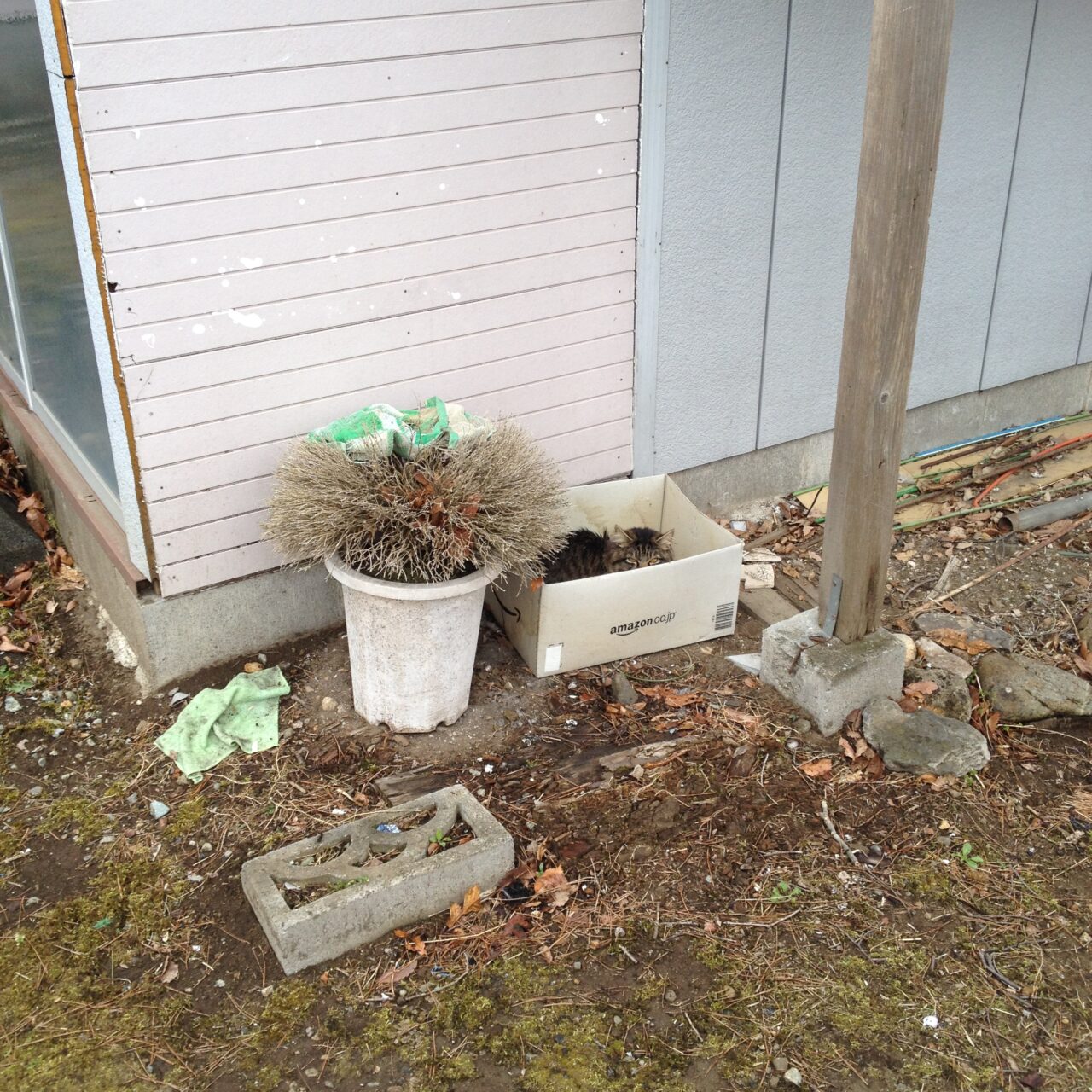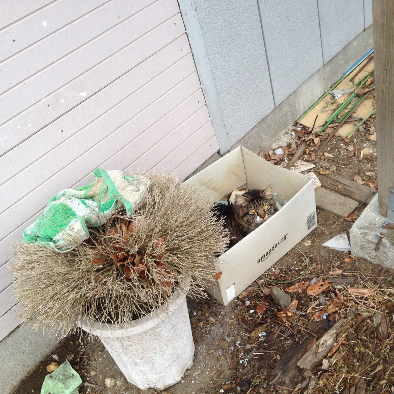 帰宅したら庭においてあったダンボールの中に野良猫がいました。