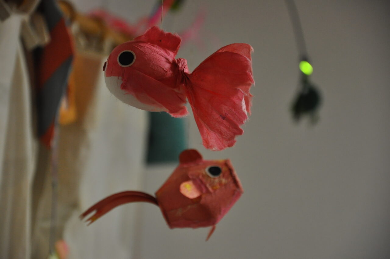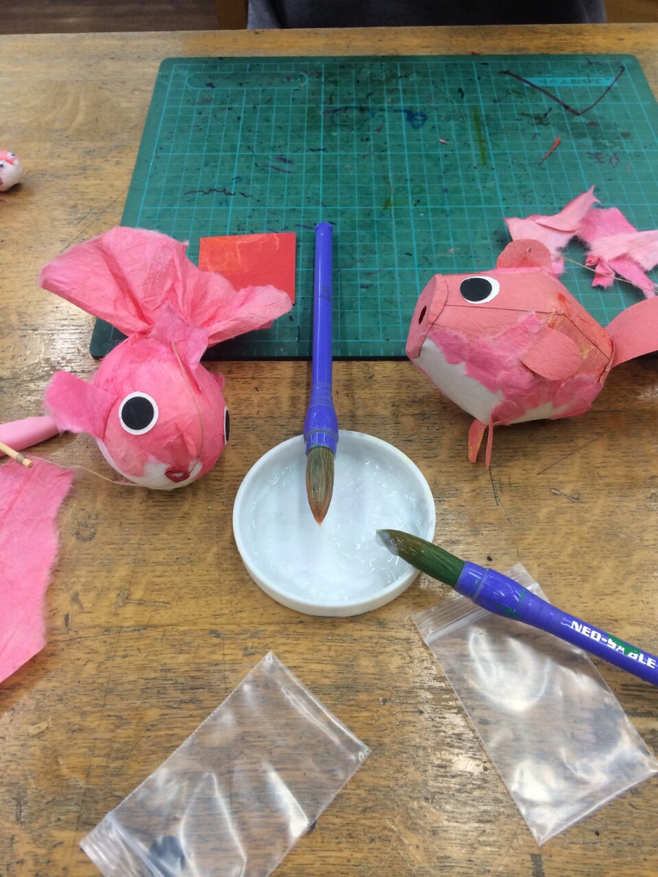 ワークショップで和紙の金魚を作りました。